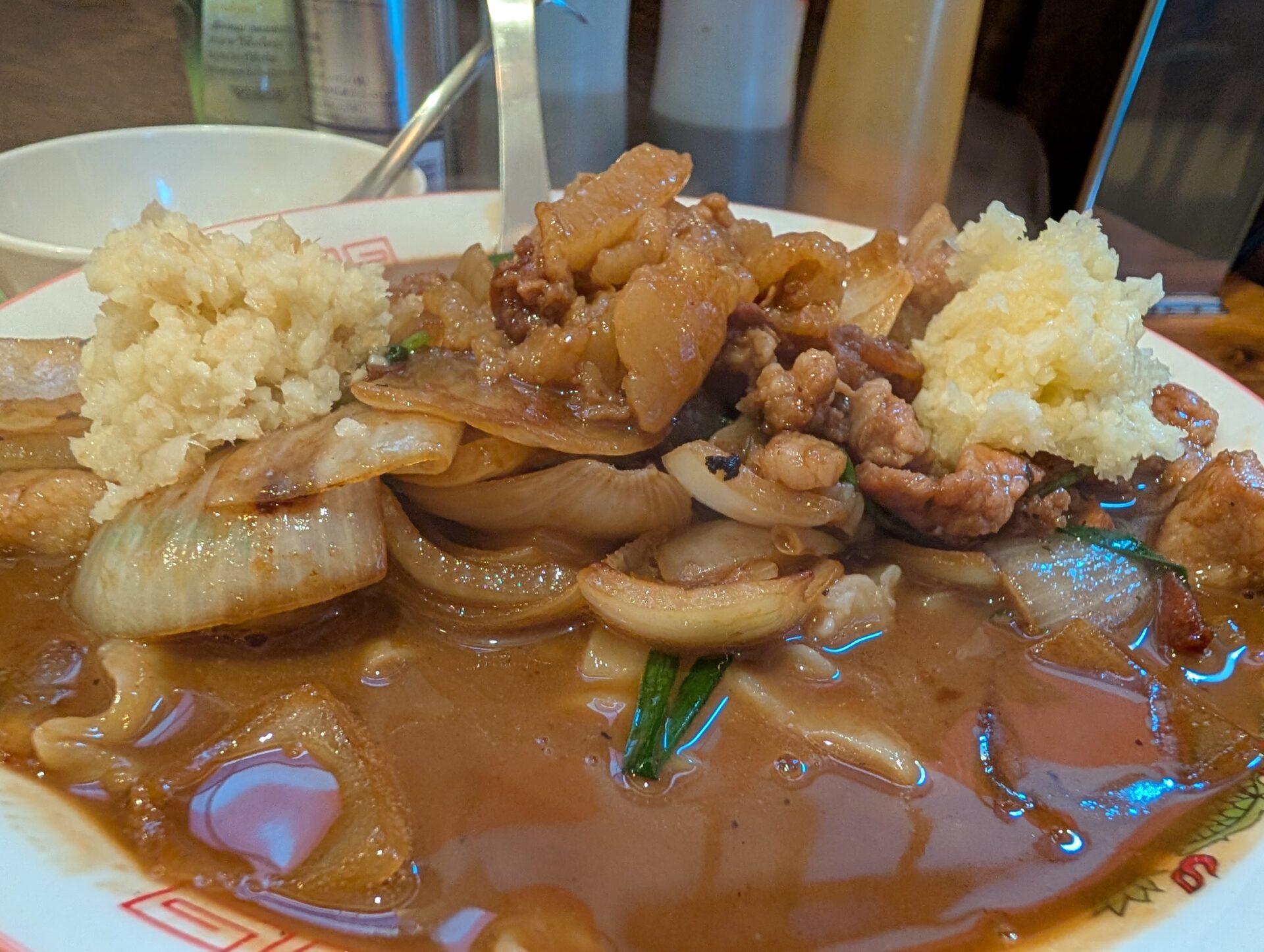 ラーメンぶうちゃんのスタミナラーメン、ホントに美味しいです。にんにくと生姜トッピングがコリコリのお肉と玉ねぎにマッチしています。そんなラーメンぶうちゃんでも、帰り際に「良いお年をお迎えください。1年ありがとうございました。」とご挨拶を交わし合いました。初めてラーメンぶうちゃんに行ったときは、失礼を存じ上げながら言うと、ちょっと気難しそうなオーナーさんだナ・・・なんて思っていたのですが、全然そんなことないです。今日も素敵な笑顔で見送ってくださいました。時として先入観(直感)は疑ってかかったほうがいいのかもしれません。