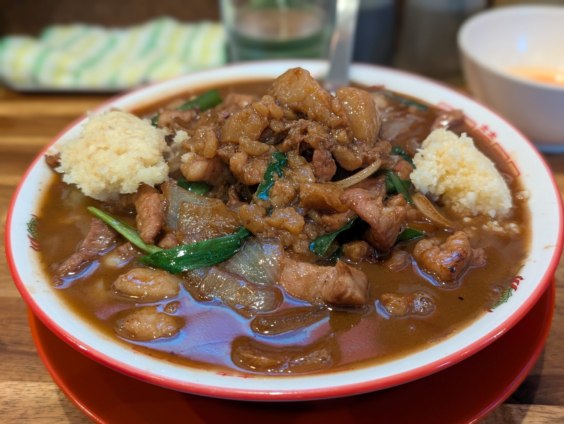豚ラーメンも美味しいけれど、このスタミナラーメンもすっかり気に入ってしまいました。味のインパクトだけで言えば、こちらスタミナラーメンのほうが強いかもしれません。Xのリポストでいただける無料生たまごをサービスしてもらい、途中から麺に投入してみたところ、まろやかなスープを楽しむこともできました。