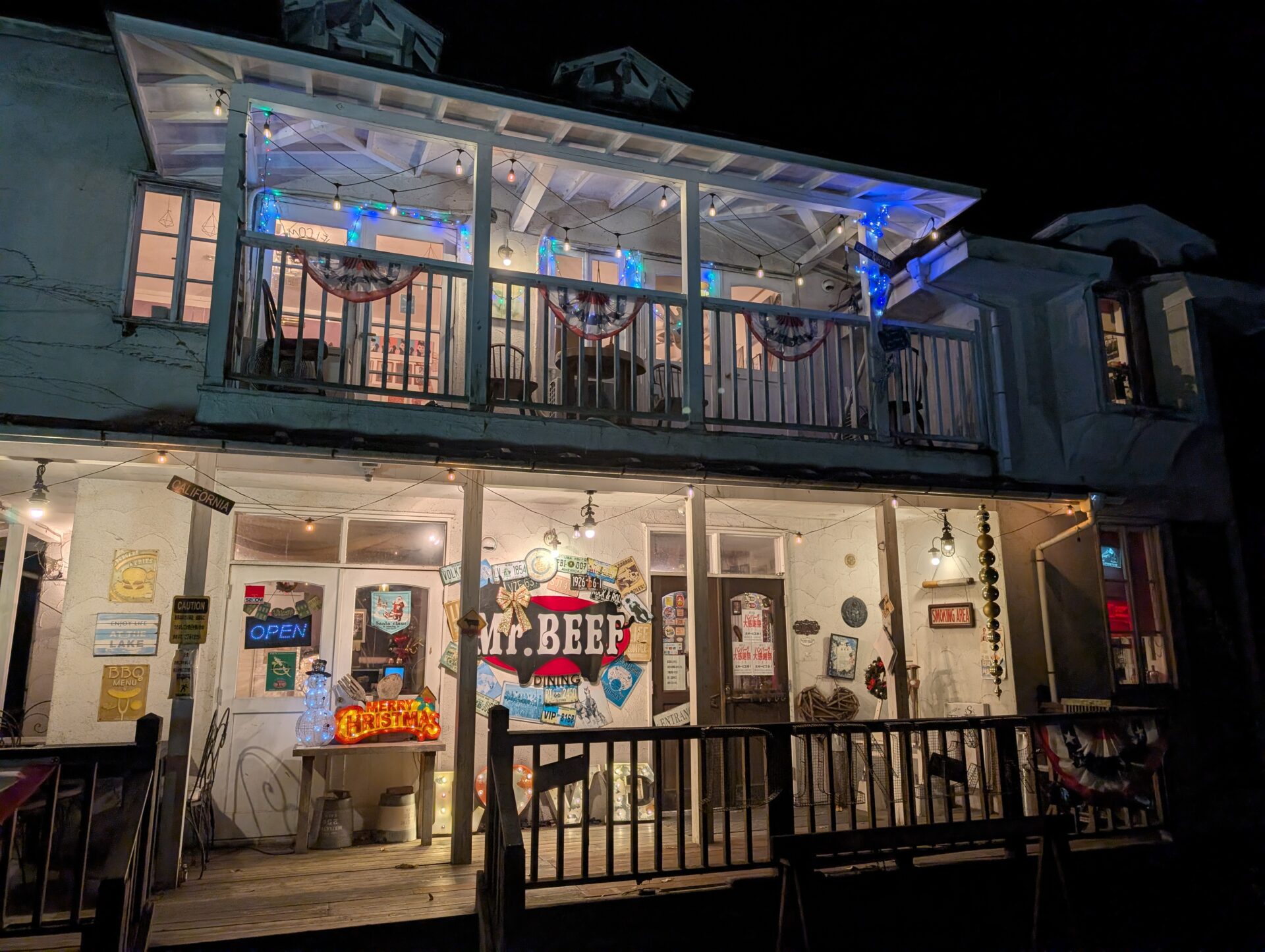 まずは温泉に浸かりたいところを我慢し、夕飯のため近くの「ミスタービーフ」というお店へ向かうことにしました。雲海閣からは3分ほど走ったところになります。