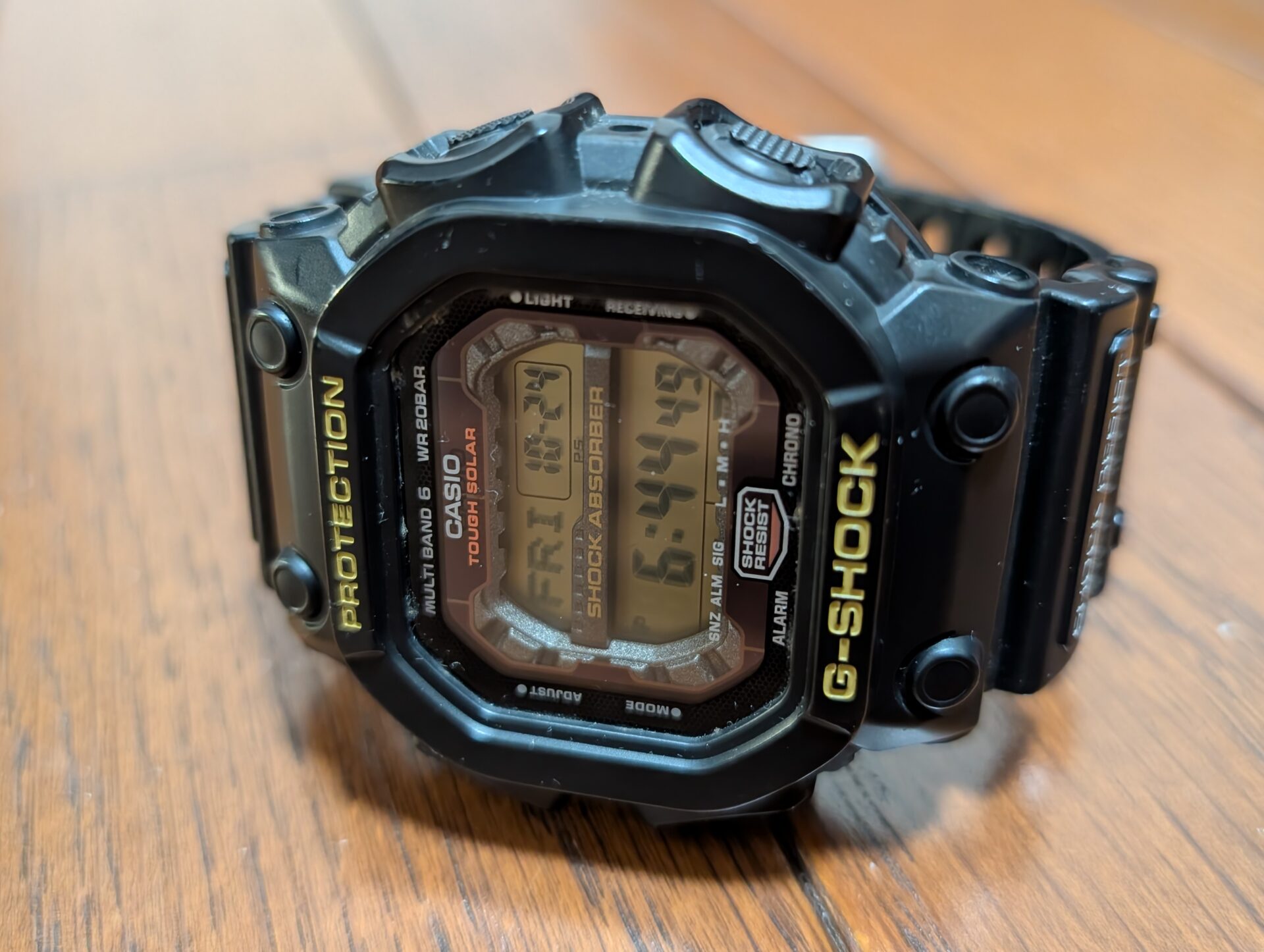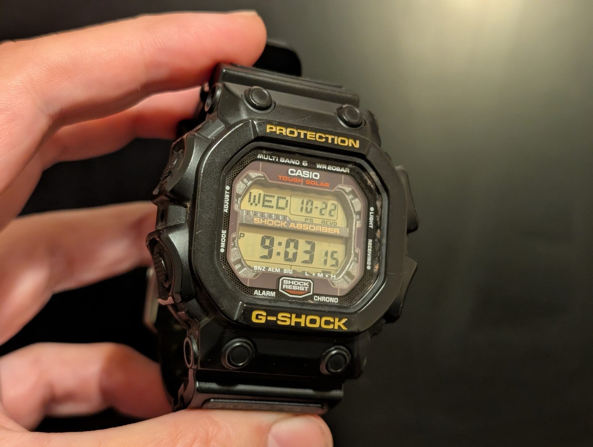 昔、友人が付けていたG-SHOCK。ずっと「いいな~、いいな~」と言っていたら、ある日「(マキシマムザホルモンのチケットを代わりに取った御礼に)あげるよ。」と、ポンとくれたG-SHOCKです。それも、コンビニのビニール袋に無造作に入れてあって、本当、ポンと。