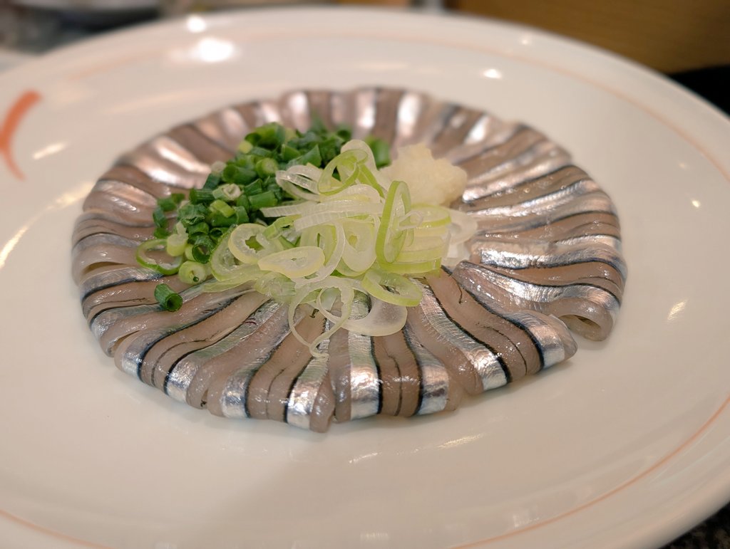 しゃぶしゃぶに夢中で、肝心の写真を撮り忘れてしまったのですが1枚だけ。きびなご刺し盛です。きびなごも大好きで、近所の百貨店で九州物産展があるたびに買ってきては「きびなごの炙り焼き」を食べています。マヨネーズに七味をちょっとかけたものにつけて食べるのがお好みです。