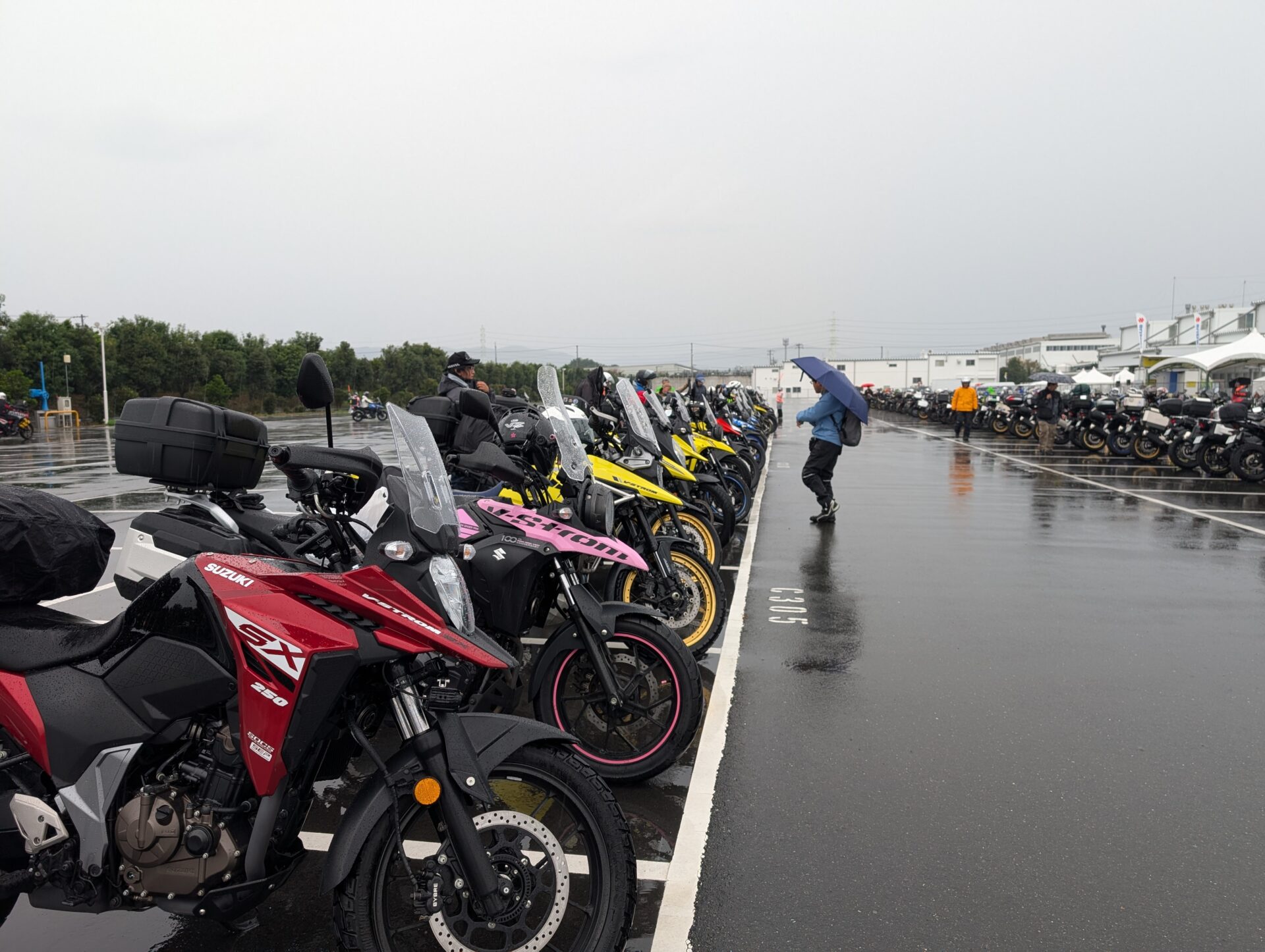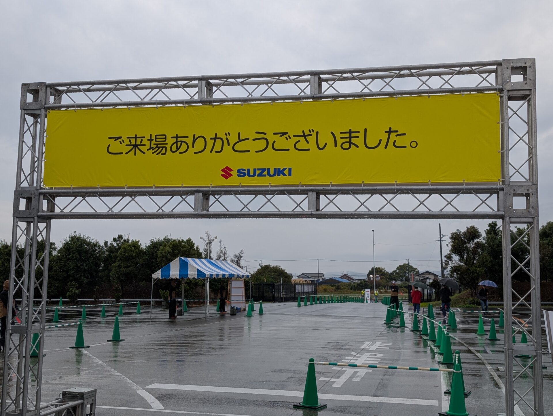 Vストローム公式ミーティングの会場はスズキの浜松工場です。くれたけインからは、おおよそ30分ほど。9時開場なので8時過ぎに出ればいいかな、なんて思ってベッドに横になったらベーコンとスクランブルエッグを食べて満足したのか、二度寝をしてしまい・・・起きたら8時を廻っていました。いそいそと仕度をしてチェックアウト。