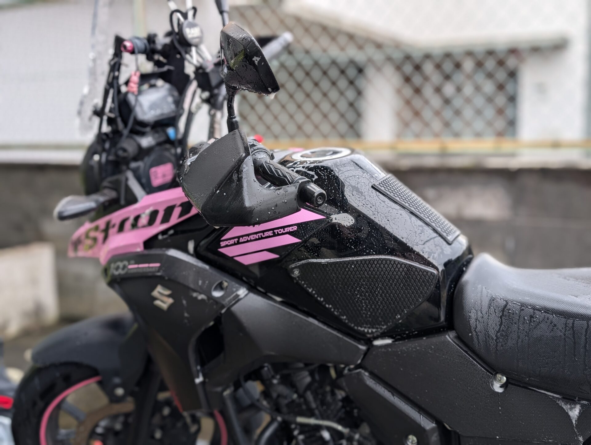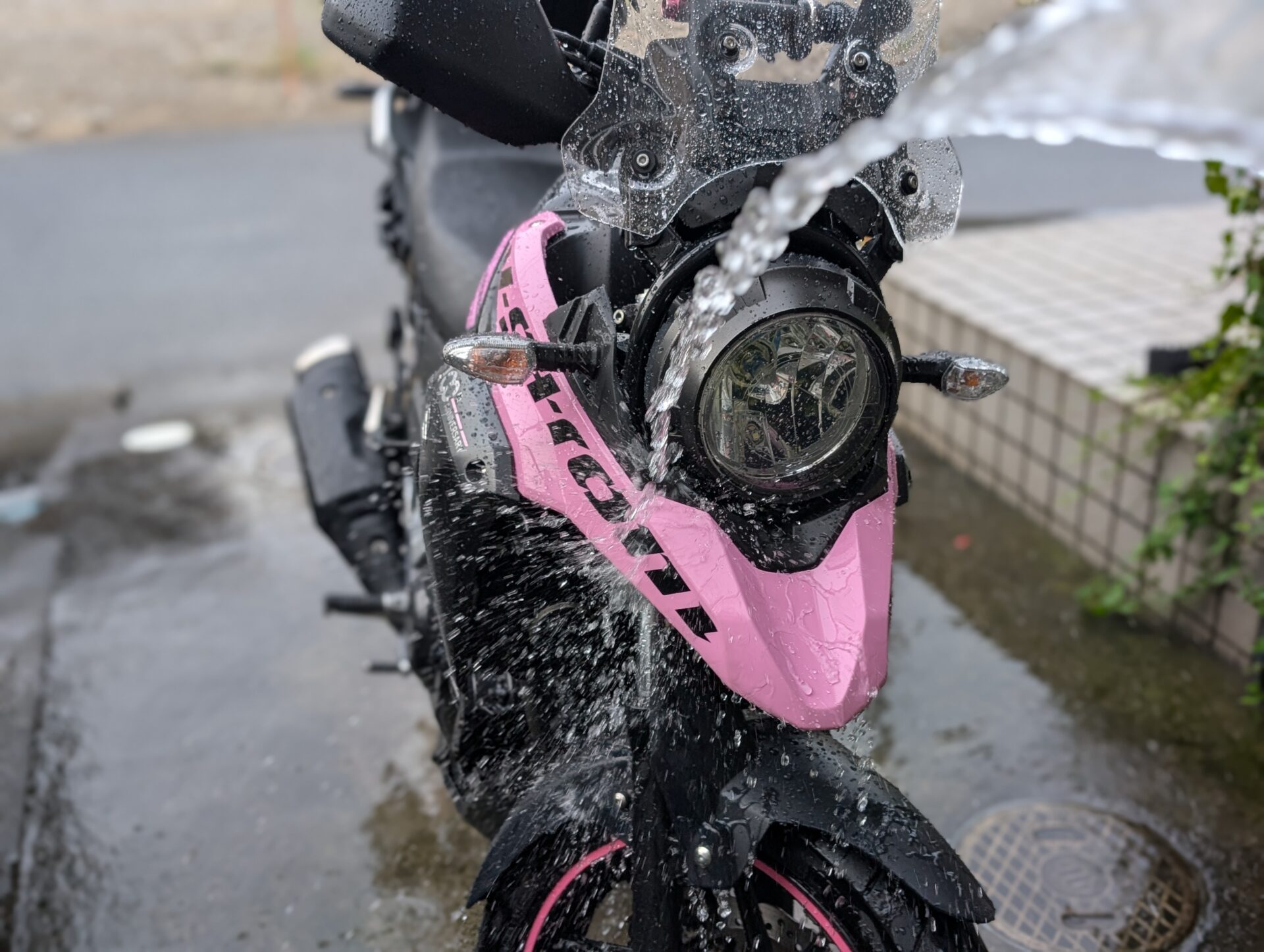 最近は週末になると天気が崩れますね。午後から雨マークだったので、降り始める前の午前中にVストローム250の洗車をすることにしました。