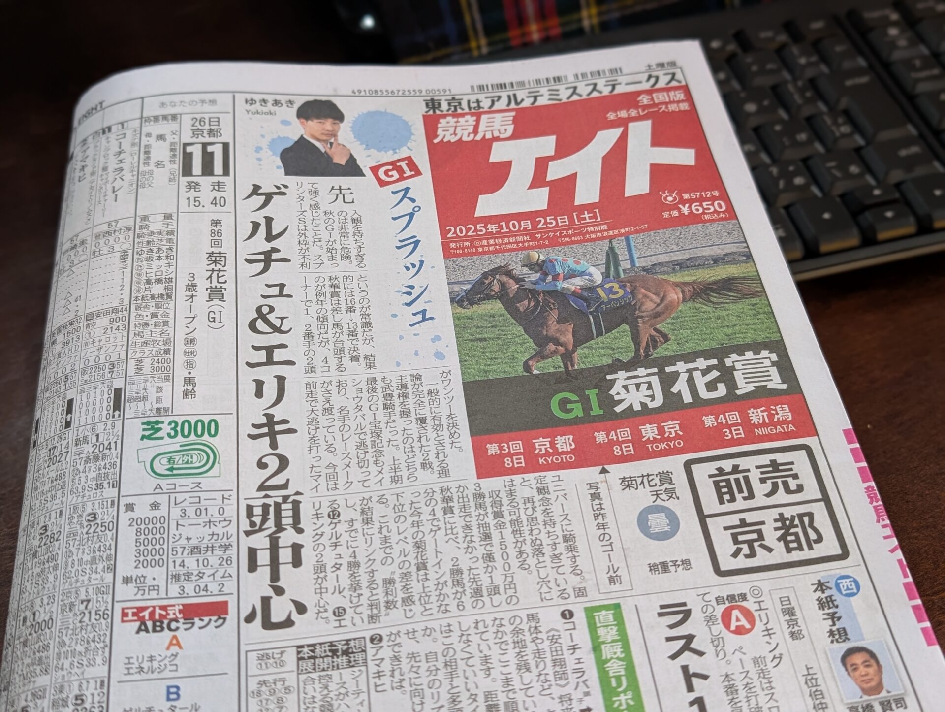 話は変わりますが、ご贔屓の競馬新聞ってありますか?自分は競馬エイトです。特に何が良いという訳ではないのですが、イチバン見やすいと思っていて。競馬ブックとか勝馬を愛読されている方は、渋くてカッコいいと思います。